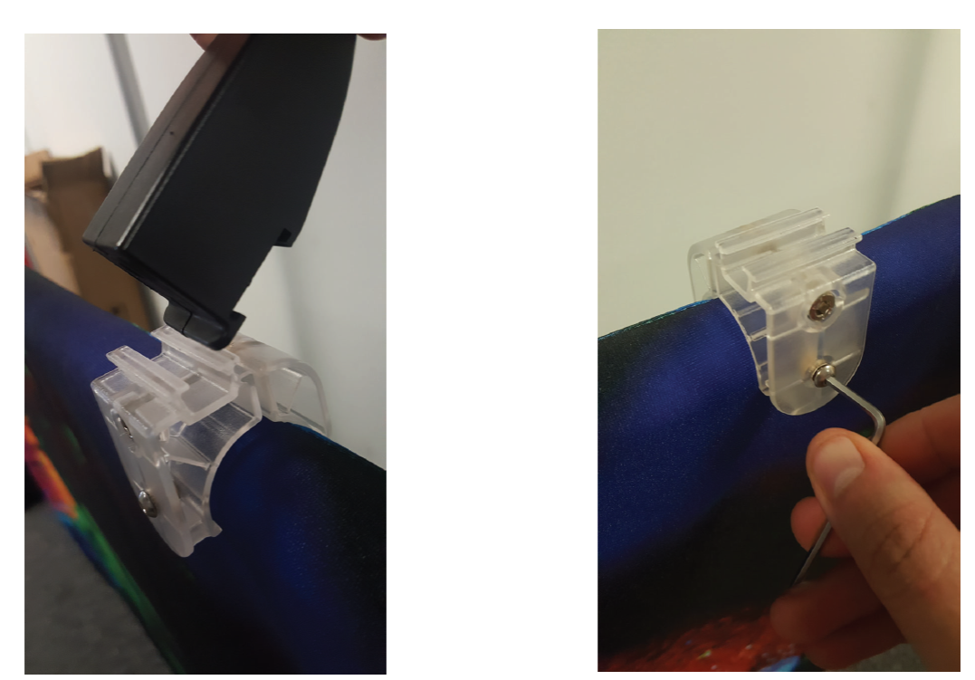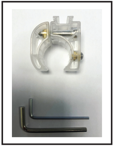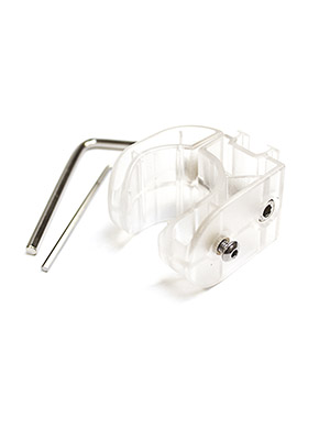 Pinza trasparente che si adatta a strutture in tubolari da 30mm Ø, come Formulate / Modulate, per il fissaggio di faretti o di un pannello.